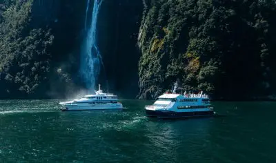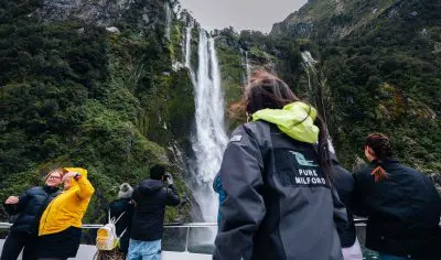 The Milford Sound cruise travels the length of the fiord to the Tasman Sea stopping by some of the outstanding nature features, waterfalls and seal colonies during the cruise.